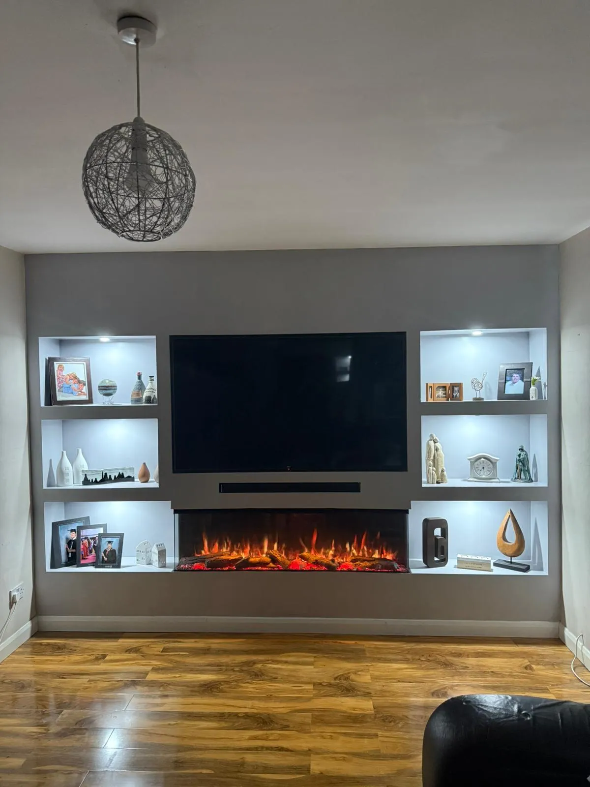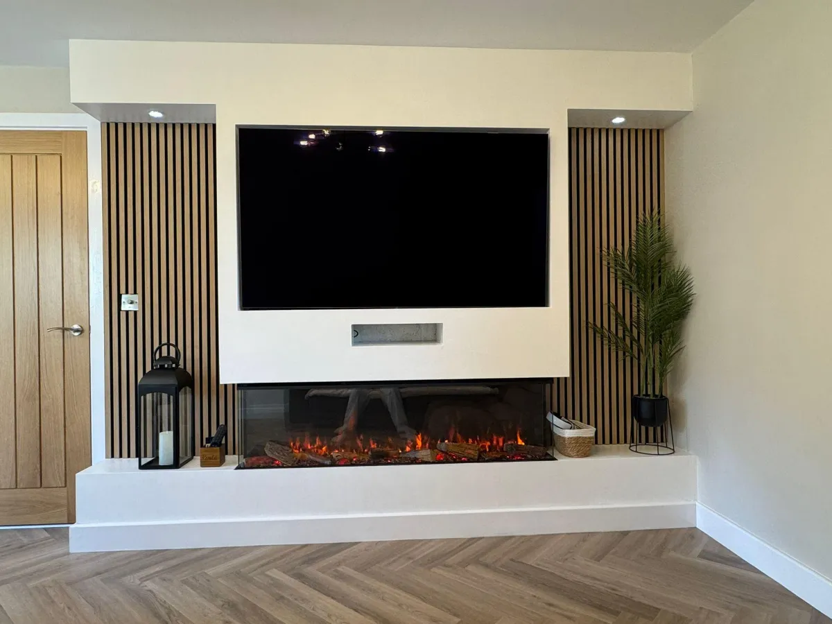 Every bespoke electric fire media wall or modern wall panelling feature wall is completed with meticulous attention to detail. We guarantee the perfect finish with every project, making your home a stylish, functional, and comfortable space to enjoy.